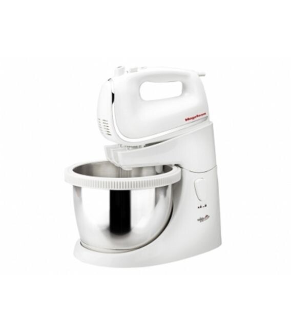 Batidora amasadora de varillas con bowl inoxidable de 3 litros de capacidad, 550W, 5 velocidades y función tubo. Incluye varillas amasadoras y varillas batidoras.